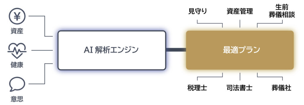 個人の状況を解析し、AIPによって最適な葬儀・信託プランを自動生成。